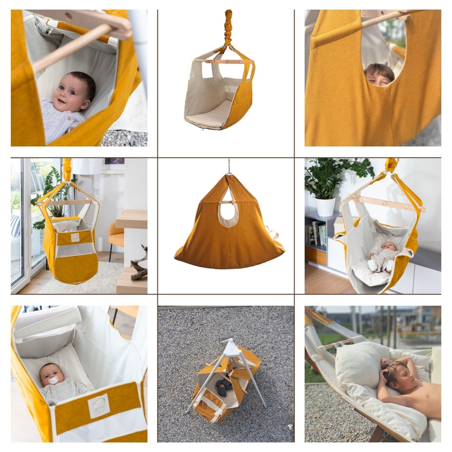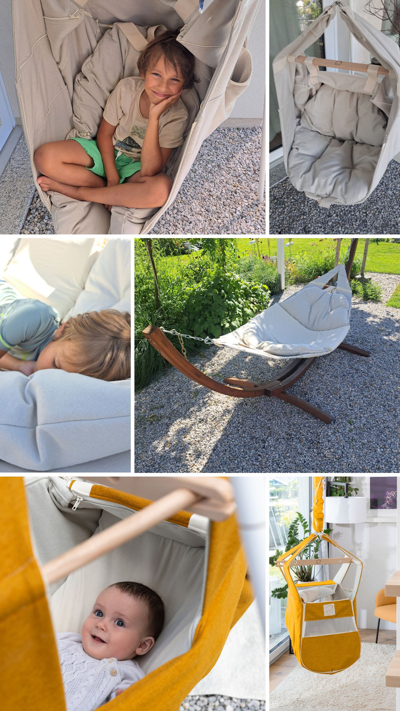 Wenn Eltern ihr Baby in die Hängematte legen, stellt sich beim Kind ein Gefühl von Geborgenheit und Sicherheit ein. Es findet Ruhe und Entspannung, ohne von den zahlreichen Einflüssen überfordert zu werden. Unser Ziel ist: Eltern und Kind besonders in den spannenden ersten Lebensjahren durch guten Babyschlaf zu entlasten, Urvertrauen zu schenken und dem Kind mit unseren Wiegen eine liebevolle und sichere Umgebung zu schaffen. Doch auch danach soll die Wiege für euer Kind zu einem zentralen Teil des Kinderzimmers werden, zu einem Wohlfühlort, der es bis zum zehnten Lebensjahr weiter begleiten kann.